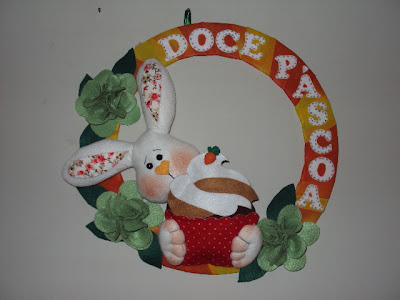 | Material: 30cm de tecido estampado Estilotex 30cm de feltro Estilotex 30cm de algodão cru 10cm de tecido colorido liso para as orelhas 30cm de arame de artesanato linha de bordar linha de pipa enchimento de bonecas cola quente ![]() 1. Cortar todos os moldes nos respectivos tecidos. 2. Para fazer a carinha costure como se fosse um fuxico. Franzir e encher para que fique como uma bolinha. 3. Com o nariz fazer a mesma coisa. 4. Nas orelhinhas, colocar a parte colorida no meio de cada orelhinha e pespontar com linha de bordar (na foto, ao lado das orelhas, o narizinho pronto). ![]() 5. Depois de pespontado, pegar dois pedacinhos de 13cm de arame de artesanato, dobrar as pontas e enrolar. 6. Colocar um dentro de cada orelhinha, depois enrolar as duas partes que ficaram para fora. 7. Na imagem 7, você vê: a carinha, nariz e orelhinhas prontas. Para fazer as pestaninhas no tamanho ideial, você deve utilizar a linha de pipa. Para isso, dê 4 voltas usando 3 dedos da mão, amarre no meio com a mesma linha e corte ao meio para ficar como um bigodinho. 8. Para montar o rostinho, você deve primeiramente passar o blush, depois colar a pestaninha e em cima delas o narizinho. Então, pintar os olhinhos e os pontinhos que formam os detalhes do rostinho com tinta de tecido. Para fazer a boquinho, faço um risquinho e um pontinho no final deste risco, como mostra a imagem .Você pode fazer isso, com um “pinta bolinhas” e caneta de tecido de ponta fina. ![]() 9. Para montar a flor, junte o feltro e o tecido estampado da florzinha, coloque um sobre o outro e pesponte com linha de bordar em toda a volta da flor. 10. Faça um corte no meio da flor sem pegar o feltro e encha com o enchimento de bonecas. 11. Coloque a ponta do arame dentro dessa abertura e cole com cola quente. 12. Em cima cole a carinha também com cola quente. ![]() 13. Para fazer a cenourinha corte um triangulo do tamanho desejado e mais 6 partes pequenas te tecidinho verde para as folhinhas. 14. Dobre o triangulo e passe a ponta na máquina de costura. Desvire, encha com o enchimento e feche a abertura. Em seguida faça um asterisco com as partes cortadas para as folhinhas e costure no meio. Em seguida é so colar em cima da cenourinha. 15-16. As cenourinhas são coladas aonde você achar melhor. Nos exemplos acima, coloquei em baixo do rostinho dele para parecer menino e em cima da cabecinha para parecer menina. Você encontra muito mais coisa no site da Andrea, que é quem cedeu as imagens para o blog baú de idéias, no link a seguir: http://www.flickr.com/photos/euvocetrabalhos_manuais/5492014737/in/photostream/ |